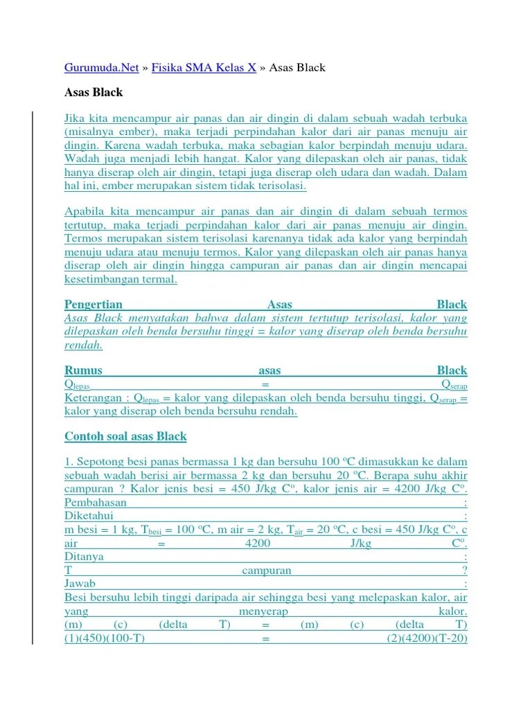 Soal Asas Black / Kapasitas Kalor Jenis Asas Black Pengertian Contoh Soal Rumus Perhitungan 12 / Air bermassa 200 gram bersuhu 20 °c dicampur dengan 100 gram air bersuhu 90 °c.. Artikel fisika kelas 11 kali ini akan membahas materi belajar tentang suhu dan kalor. Air bermassa 200 gram bersuhu 20 °c dicampur dengan 100 gram air bersuhu 90 °c. 12.06.2018 · contoh soal asas black dan jawabannya. 02.09.2019 · untuk lebih jelasnya perhatikan contoh soal asas black dan pembahasannya dibawah ini. Hukum ini berbicara tentang pencampuran dua buah zat yang memiliki perbedaan suhu, dimana zat yang memiliki suhu yang lebih …